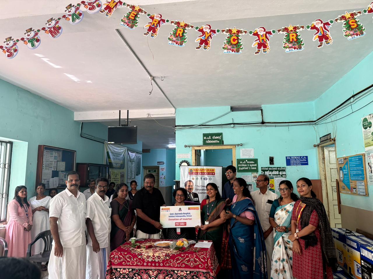 Manappuram Foundation supported the Government Ayurveda Hospital, Anthikkad, Puthenpeedika, Thrissur, by donating an inverter to ensure uninterrupted power supply on 28th January 2026. The event was inaugurated by Ms. Dr. Lija Jacob M., Chief Medical Officer, KRCM Government Ayurveda Hospital, Anthikkad.