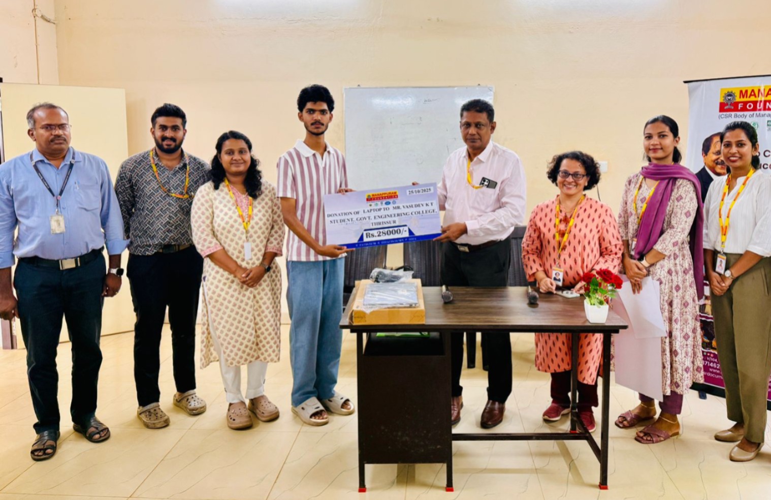 On 25th October 2025, Manappuram Foundation donated Laptop to Mr. Vasudev K T, Valapad, Student of Govt. Engineering College, Thrissur. The event was inaugurated by Mr. George De Das, CEO of Manappuram Foundation