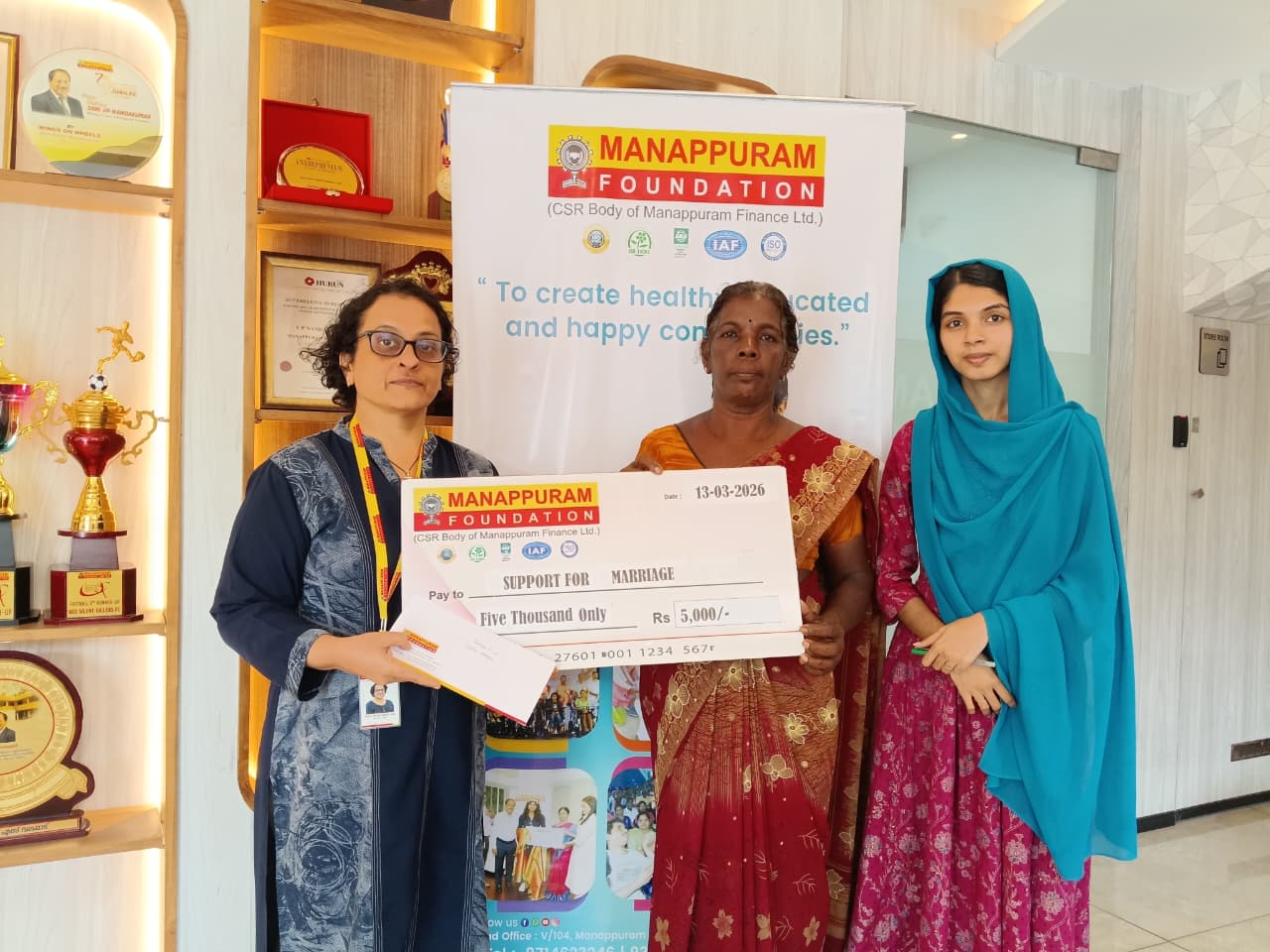 On 13th March 2026, Manappuram Foundation provided Financial Aid for Ms. Saranya TU, Valapad. The event was inaugurated by Ms. Silpa Tresa Sebastian, CSR Head, Manappuram Foundation