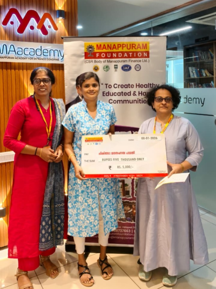 On 8th January 2026, Manappuram Foundation provided Financial Assistance to Ms. Shimi S of Palakkad C/o PP Sumod, MLA Tarur Constituency. The event was inaugurated by Ms. Silpa Tresa Sebastian, CSR Head, Manappuram Foundation