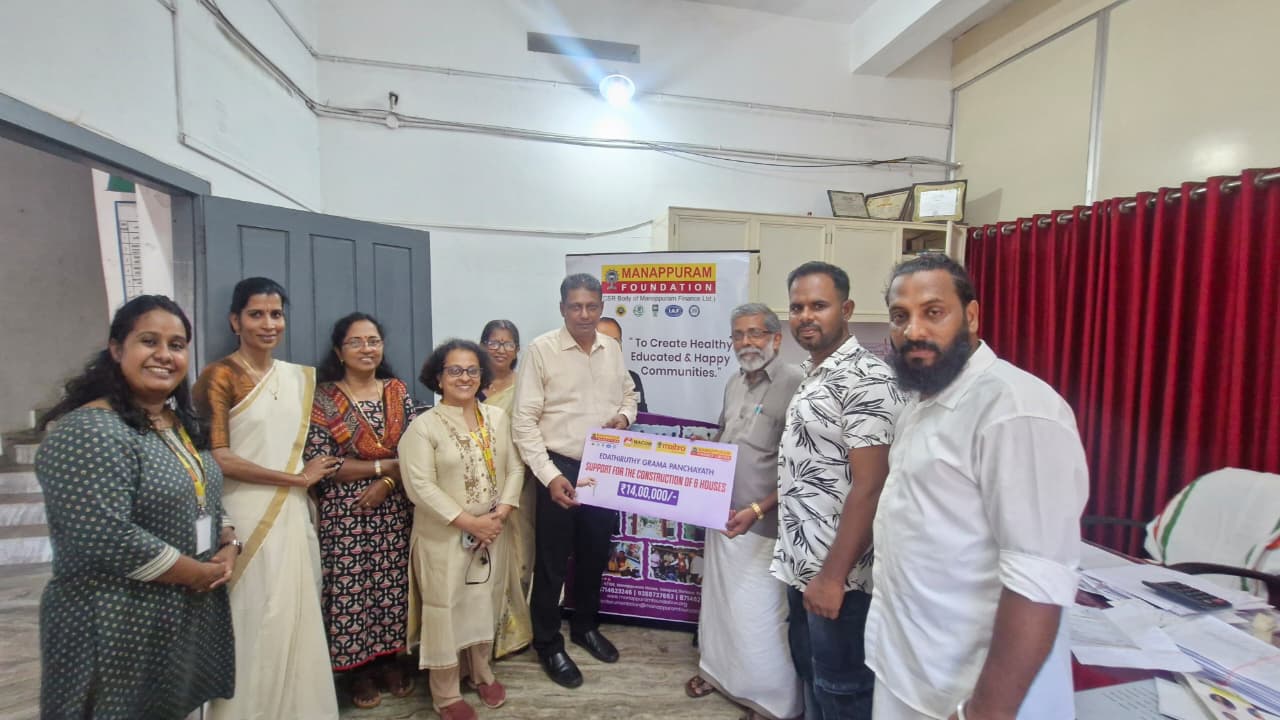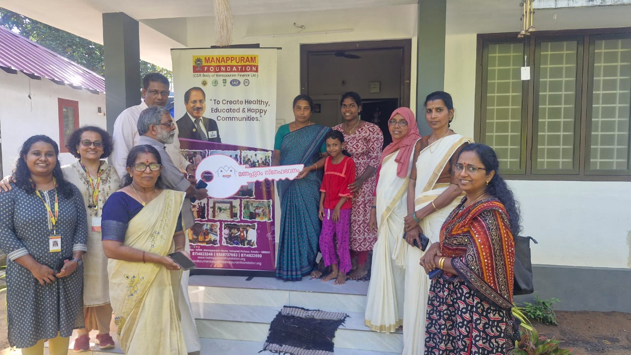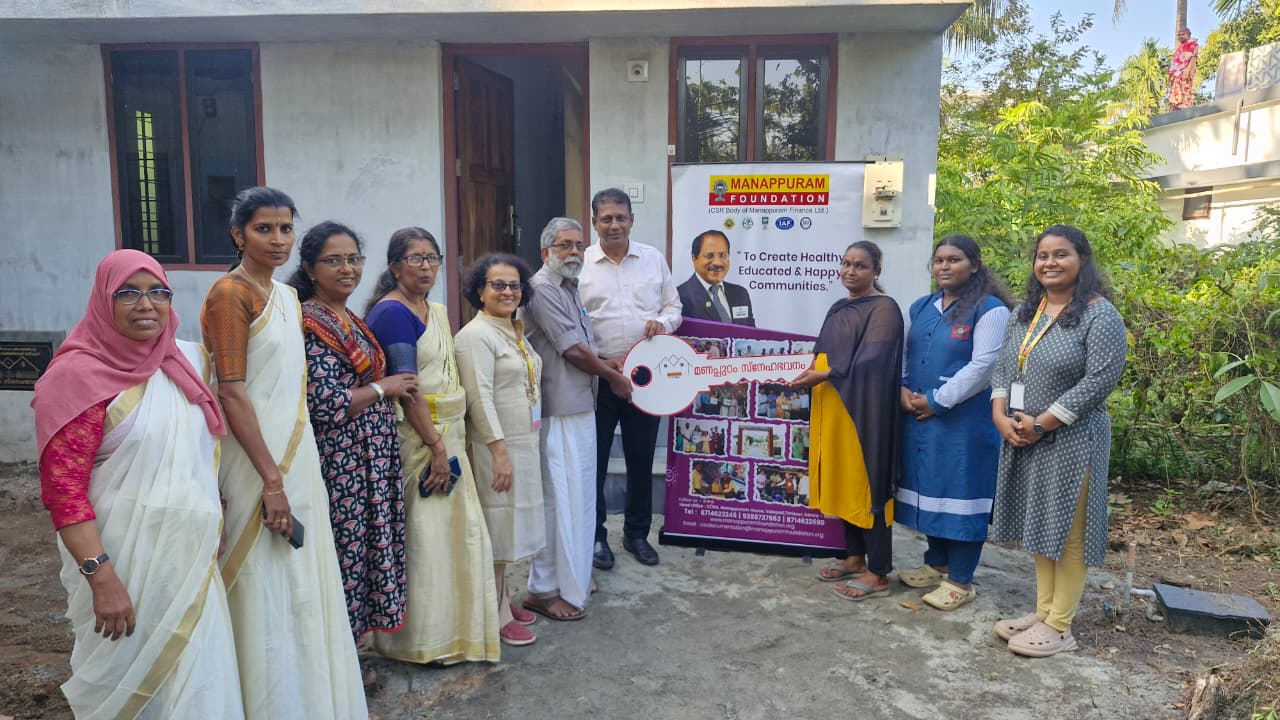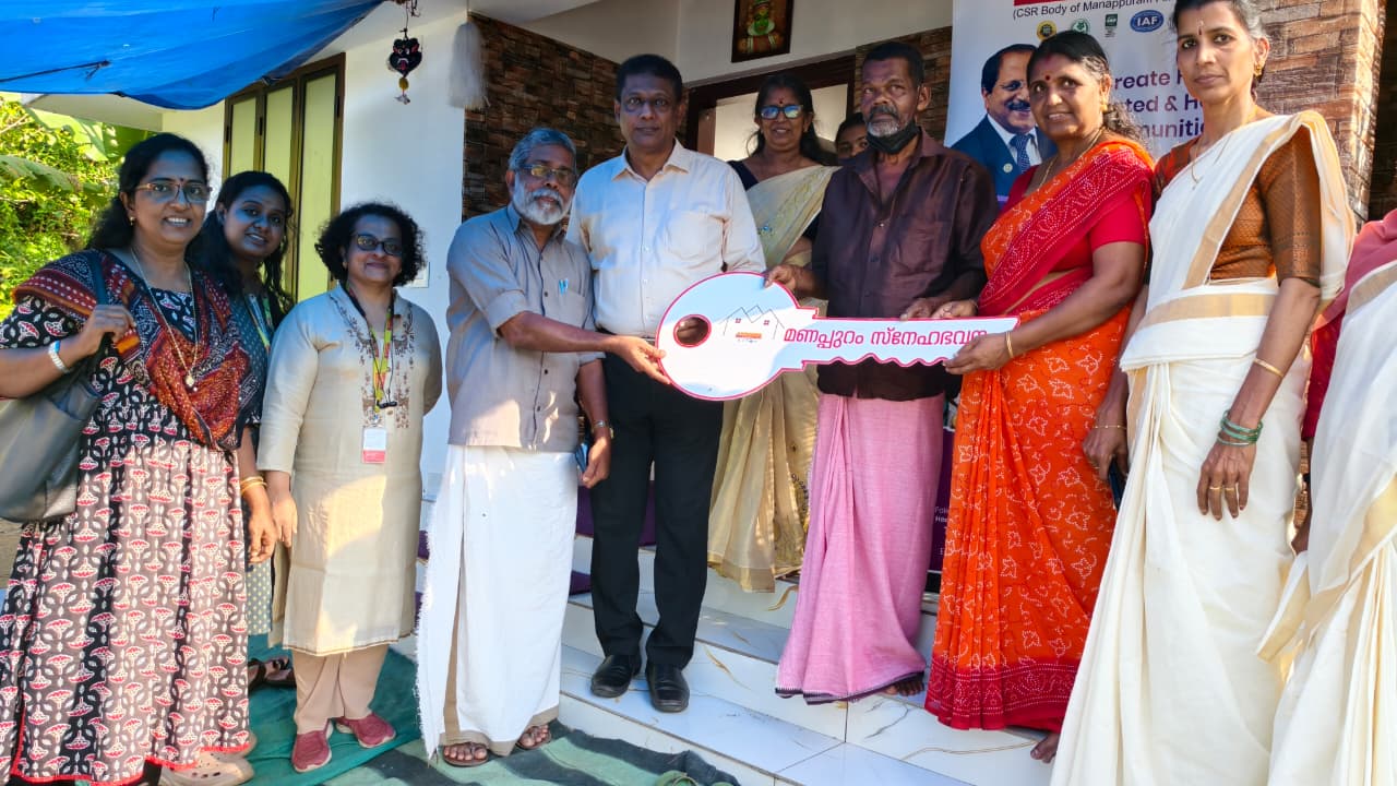 On 1st November 2025, Manappuram Foundation organized Key Handing Over Ceremony of Manappuram Snehabhavanam to Six beneficiaries of Edathiruthy Panchayath. The event was inaugurated by Mr. TK Chandrababu, President of Edathiruthy Gramapanchayath