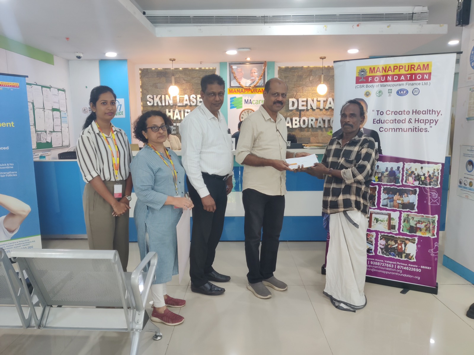 On 4th November 2025, Manappuram Foundation provided support for Medical Financial Assistance to 2 Beneficiaries of Ernakulam District. The event was inaugurated by Mr. George De Das, CEO of Manappuram Foundation