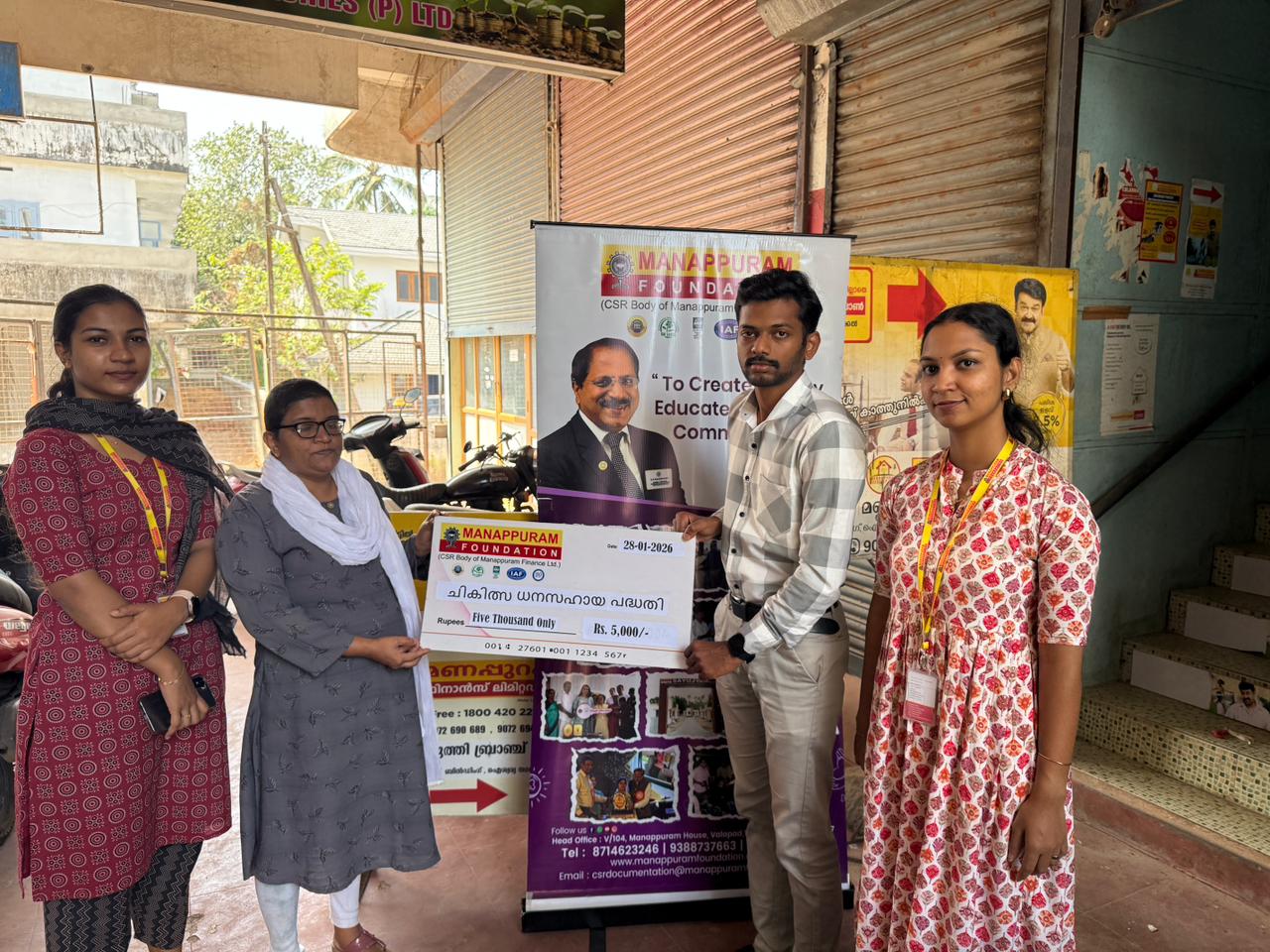On 28th January 2026, Manappuram Foundation provided Medical Financial Assistance to Ms. Nisha TA of Vellanissery in Madakkathara Gramapanchayath, Thrissur. The event was inaugurated by Ms. Silpa Tresa Sebastian, CSR Head, Manappuram Foundation