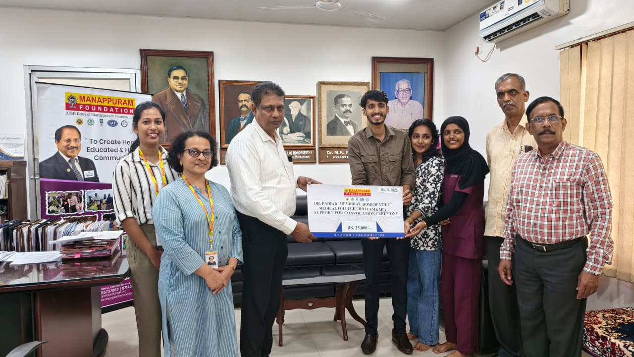 On 4th November 2025, Manappuram Foundation provided Support for the Convocation Ceremony of the Outgoing Medical batch (Interns Association 2024-2025) of Dr. Padiar Memorial Homeopathic Medical College, Chottanikkara. The event was inaugurated by Dr. MG Radhesh, Principal, Dr. N Mahesh Kumar, Medical Superintentent.