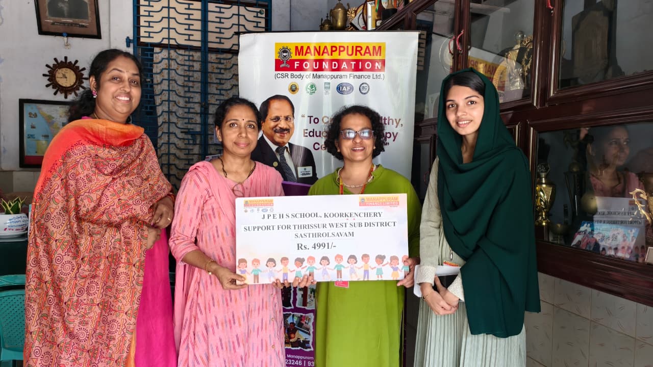 On 30th October 2025, Manappuram Foundation provided support for Thrissur West Sub District Sasthrolsavam 2025 at JPE Higher Secondary School, Koorkenchery. The event was inaugurated by Ms. Maya MB, Teacher, JPE Higher Secondary School, Koorkenchery
